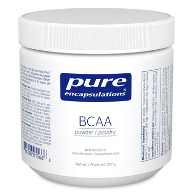 Pure Encapsulations BCAA Powder promotes muscle function during exercise.  The three branched chain  amino acids (BCAAs) leucine, isoleucine, and valine boost energy while helping to counteract muscle protein breakdown during exercise.