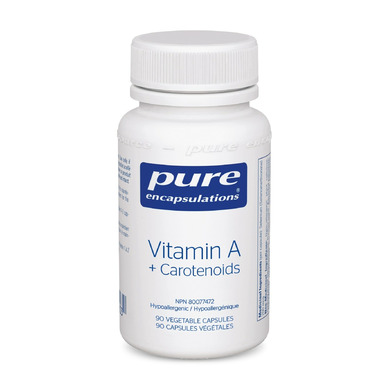 Pure Encapsulations' Vitamin A + Carotenoids is essential to the healthy functioning of a number of biological processes, including vision, the integrity of mucosal and epithelial surfaces, and the body's immune defense system.