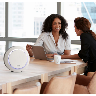 Enjoy cleaner air in your personal space with the PureZone Halo True HEPA Air Purifier from Pure Enrichment. The sleek, modern design fits on any desk, nightstand, or tabletop while beautifully complementing your decor. Featuring a coverage area up to 100 square feet, it’s ideal to use in a dorm room, office, or small bedroom. The filters effectively eliminate 99.97% of particles as small as 0.3 microns - making the air odor and dust-free for people with allergies or breathing issues. The auto-timer shuts off the unit after 2, 4, or 8 hours of continuous operation to conserve energy and extend the life of the air filter. It features two soothing levels of a soft glow night light and a Sleep Mode to turn off the night light and all control panel lights (except the Sleep Mode light). The intuitive control panel includes responsive push buttons that let you determine fan speed, air treatment time, and more.