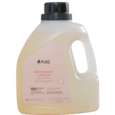 PURE Laundry Detergent Almond Blossom is made of ingredients that are good for the environment and for health, in an ultra-concentrated formula. It dissolves 95% in water. That means fewer particles released into nature, and fewer residual particles on clothes. Made in Quebec.