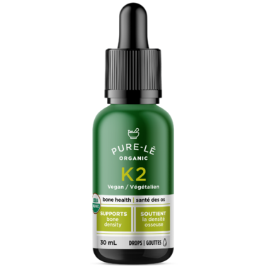 Pure-le Organics Vegan Vitamin K2 harnesses the power of patented, soy-free K2Vital Menaquinone-7 (MK-7) vitamin K2, clinically shown to be highly bioavailable and stable. Vitamin K2 in the form of MK-7 has been shown in numerous clinical trials to aid bone mineral density and strength, as well as improving cardiovascular health. It does both of these, and much more by, in concert with Vitamin D, guiding calcium to where it belongs, essential for proper calcium absorption. Pure-le Organic Vegan Vitamin K2 is pure, clean and organic. It contains only 3 ingredients: Non-Soy Vitamin K2 (in the bioavailable MK-7 form), MCT Oil (from coconuts), and organic sunflower oil. While the benefits of Vitamin D are well known, many don't realize that Vitamin D needs Vitamin K2 to maximize its benefits. This formula helps the proper absorption of calcium, while providing the correct distribution to your bones where you need it most. Pure-le Vegan Vitamin K2 is free from common allergens: Dairy, Fish, Shellfish, Nuts, Peanuts, Soy and Gluten, making it truly perfect for healthy bone, immunity and heart support.
