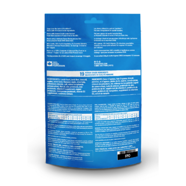 Ingredients: Lamb heart, lamb liver, broccoli, apples, lamb bone, flaxseed, inulin, dried kelp, potassium chloride, salt, mixed tocopherols (preservative), fish oil, zinc proteinate, iron proteinate, vitamin E supplement, copper proteinate, manganese proteinate, vitamin D3 supplement, rosemary extract. Nutrition Statement: PureBites® Lamb Recipe is formulated to meet the nutritional levels established by the AAFCO Dog Food Nutrient Profiles for all life stages except for growth of puppies who will weigh 70 lb or more as an adult.