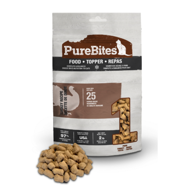 PureBites® Turkey Recipe RAW Freeze Dried Complete & Balanced cat food or topper is made with 25 Human Grade Ingredients. Made with 97% Human Grade Turkey & 3% Human Grade Essential Vitamins, Minerals & Natural Preservatives. PureBites® Turkey Recipe can be fed as a 100% complete & balanced cat food or as a mixer / topper for an added RAW protein boost.