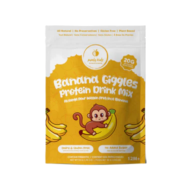 Bright, fruity, and packed with real nutrition Purely Kids Organic Banana Giggles Protein Drink Mix gives your little one a delicious boost of clean, plant-based energy.