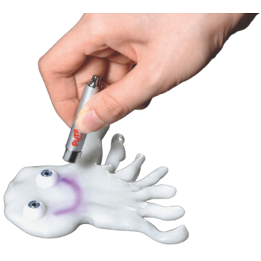 Canadian-designed! Shape it, twist it, stretch it, or even bounce it! Will melt down like a liquid when left sitting. Includes a pair of doll eyes to give your putty its own unique personality! Expose it to sunlight (or use the included UV light-pen) to watch it change colour!