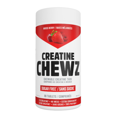 Chewable creatine monohydrate tablets. Full potency 5 g creatine per day with zero sugar. No mess. Extra convenient.