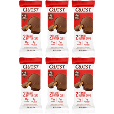 New Quest Peanut Butter Cups! Quest Peanut Butter Cups satisfy your sweet tooth with less than 1g of sugar, 11g of protein and 1g of net carbs per serving.