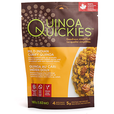 Quinoa Quickies Mild Indian Curry Quinoa - goodness simplified. Quinoa crafted with an aromatic blend of authentic Indian spices and sweetened with sun ripened raisins.