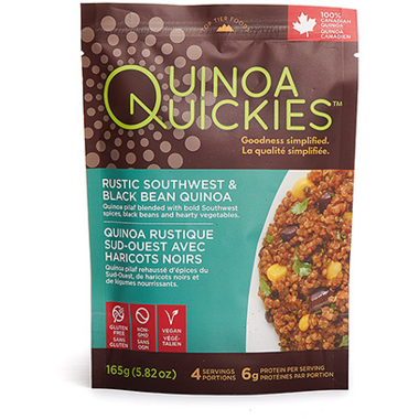 Quinoa Quickies Rustic Southwest and Black Bean Quinoa - goodness simplified. Quinoa pilaf blended with bold Southwest spices, black beans and hearty vegetables.