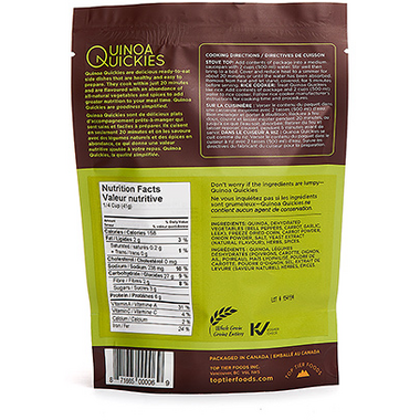 Quinoa Quickies are delicious ready to eat side dishes that are healthy and easy to prepare. They cook within just 20 minutes and are flavoured with an abundance of all natural vegetables and spices to add greater nutrition to your meal time. Quinoa Quickies are goodness simplified.