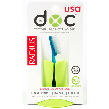 The RADIUS Doc is a multi-use suction holder that can be used to hold your toothbrush and other household items. The Doc can suction to any smooth surface to hang either vertically or horizontally.