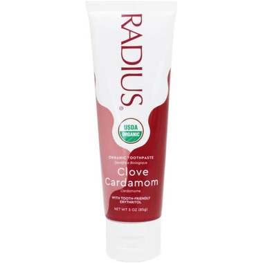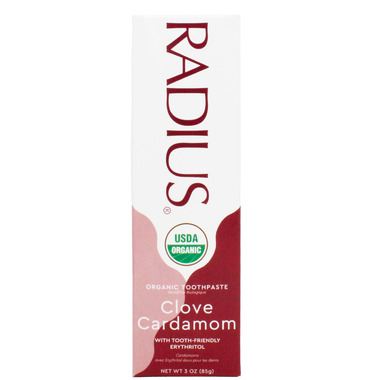 Radius USDA Organic Clove Cardamom Gel Toothpaste features spicy clove and cardamom. This product tastes like a treat while being