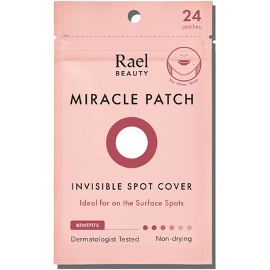 Rael's Miracle Patch Invisible Spot Cover quickly flattens acne and is invisible on all skin tones. With tapered edges and a clear, matte finish, it's perfect for discreet daytime wear.