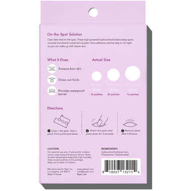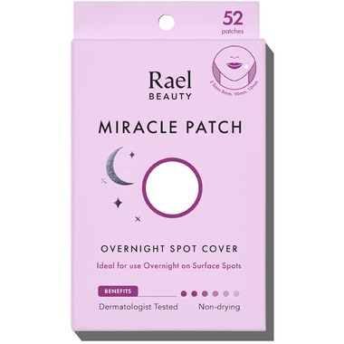 Rael's Miracle Patch Overnight Spot Cover stays on through every toss and turn, so you can wake up pimple-free. Hydrocolloid patches with extra adhesive ensure a secure fit, protecting your blemishes from pillow germs while gently absorbing impurities.