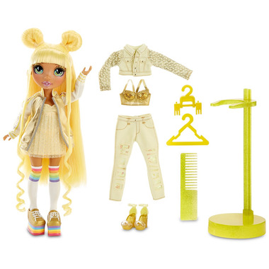 • Collect the Rainbow of fashion dolls with Rainbow High?. Sunny Madison? is dressed in yellow from head to toe. She has gorgeous features and beautiful hair.