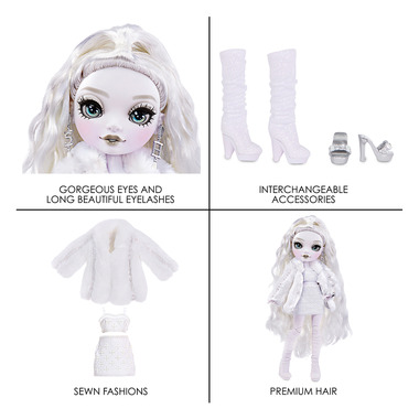 • GORGEOUS FEATURES: Natasha Zima has a unique design and is dressed in Dove White from head to toe. She has gorgeous, detailed features in her fashion, beautiful wavy white hair, long real eye lashes and glass eyes. Collect the Rainbow of all the gorgeous Shadow High fashion dolls.