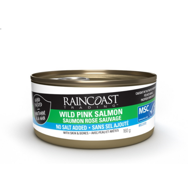 Raincoast Trading Wild Pink Salmon No Salt Added is sustainable and delicious Pacific salmon that doesn’t get any simpler than this, and it is especially useful if you want to keep your sodium intake down at sea level.