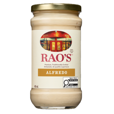 Rao's Homemade Alfredo Pasta Sauce features a blend of rich Parmesan and Romano cheeses, cream, and butter. Following the same authentic Rao's recipe perfected by generations, each jar of alfredo sauce brings you the warm, classic flavor of homemade pasta sauce. This white alfredo pasta sauce is slow-cooked in small batches with hand-selected ingredients resulting in a super creamy, cheesy sauce that's loaded with flavour.
