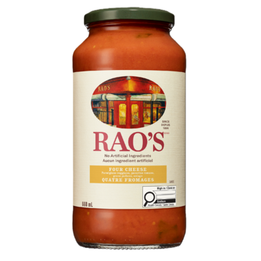 Raos Homemade Four Cheese Sauce is a rich blend of Italian tomatoes and four classic, Italian cheeses without onions or garlic.