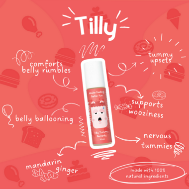 Essential Oil Roll-on, TILLY TUMMY is formulated to help comfort belly rumbles, wooziness, ballooning & upsets. Made with 100% pure essential oils & safely diluted with fractionated coconut oil, for rascals 2yrs+.