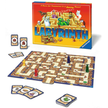 A very exciting game. Be the first to collect all of your treasures by shifting the walls of the Labyrinth to create a clear path to get to them. Watch out for traps as the walls constantly move. This mysterious maze game is magic! 2-4 Players.