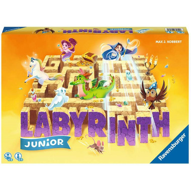 Race for treasures in a moving maze! Race for treasures in a moving maze with Labyrinth, an international classic for over 35 years! On your turn, you'll shift the maze, then move towards the treasures or magical creatures on your cards. The first player to find all of the treasure on their cards and make it back to their starting point wins. No two games are alike! In this Junior version, the maze is smaller and tiles are larger to make playing easier for younger players. In this Ravensburger Junior Labyrinth game, players are magicians who are trying to find their way through the labyrinth to reach the hidden secrets. The secrets include a sweet unicorn, a green dragon, and a sparkling treasure chest. However, the walls in the labyrinth are constantly shifting, making it difficult to reach the secrets. The magician who finds the most secrets wins the game. This version of Labyrinth is perfect for beginners and children.
