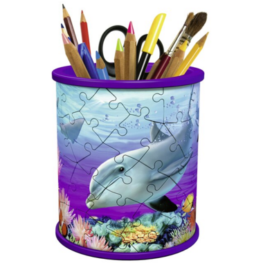 Puzzles are not limited to 2D Jigsaw Puzzles, amplify your puzzle experience with this 3d pencil cup Puzzle from Ravensburger! Follow the numbered pieces or challenge yourself and follow the image to put together a underwater-themed high pencil holder.This 3d Puzzle is perfect for a playroom, desk, or bedroom ages 9 and up! Ravensburger’s 3D puzzle pieces are sturdy and interlock perfectly to create unique 3-dimensional shapes that stay together with no glue required.