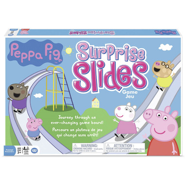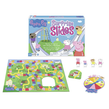Slide through the world of Peppa Pig! Hurry along the colorful path with Peppa Pig and her friends, but don’t be late for school! You’ll never know when the shortcut slides will mix and flip—some will zip you ahead, while others will send you tumbling backward! It’s a different game board every time you play!