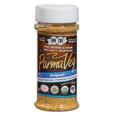 Raw Vitality Original Parma-Veg Vegan Parmesan Shaker is a raw, vegan, organic Parmesan alternative seasoning made with soaked walnuts and soaked & sprouted sunflower seeds and it contains no dairy. It will add spice and life to your rice, pasta, salads, veggies, popcorn and your other favorite recipes.