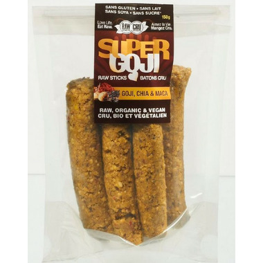 Raw Vitality Super Goji Energy Sticks are made from the finest organic ingredients available. With organic raw enzyme power and a moist texture, the scrumptious homemade blend of cashews Goji, chia, and coconut flakes, we know this is a winner.