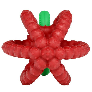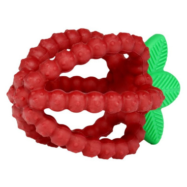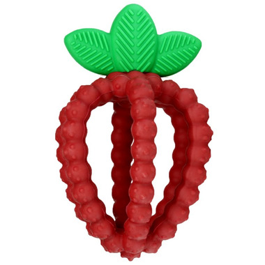 The RaZberry Bites Teething Toy is a soft silicone teether constructed of BPA Free Silicone, whose multiple textures are specially designed to soothe your baby's sore gums. Its open-shaped design is perfect for little ones to grab onto, while its green multi-texture leaves are perfect for getting both front and back teeth. It can even be frozen for extra soothing! The silicone will get cold, but not hard. This nature-inspired best-seller will also help introduce your little ones to healthy fruits at a young age.