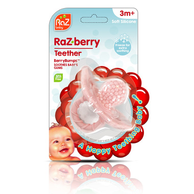 RaZbaby RaZberry Silicone Teether Toy is a stimulating, multi-textured pacifier used to soothe swollen gums and emerging teeth. Perfect texture to chew.