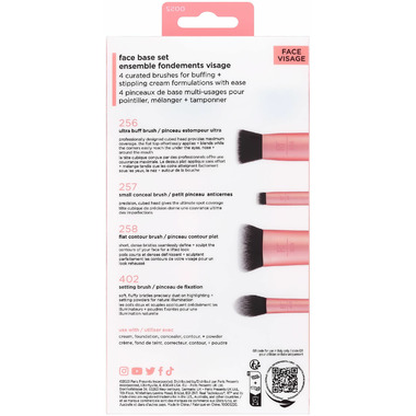 The Real Techniques Face Base Set includes 4 curated, multiuse makeup brushes to help you expertly stipple, blend, and buff on your base with ease.