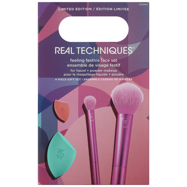 Give the gift of a flawless blend and fierce finish that lasts with this 4-piece Real Techniques Feeling Festive Face Set. From powders to liquids, this set has you covered for any makeup needs.