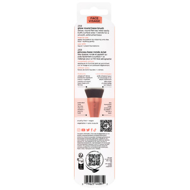 The Real Techniques Glow Round Base Makeup Brush features a round, flat-top head to easily buff and blend foundation for a smooth, airbrushed base. The 259 makeup brush's dense, flat top buffs over a large surface area and blends out hard-to-reach spots of the face and neck. This foundation brush is best used with liquid and cream foundations or primers for a full coverage look. The base brush features a NEW custom-cut round head shape with a flatop and UltraPlush, high quality, dense bristles for maximum pickup and laydown.
