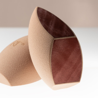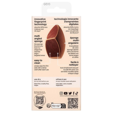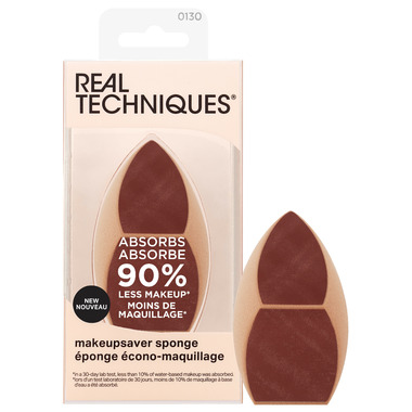 The Real Techniques Makeupsaver Sponge is lab tested to ABSORB 90% LESS MAKEUP* The Makeupsaver Sponge is designed with innovative fingerprint technology to reduce makeup absorption while providing a natural, streak-free finish. The makeup sponge's patented, multi-angled shape effortlessly reaches all areas of the face, both large and targeted. The makeup blender sponge is best used dry with liquid and cream products such as foundation and concealer.