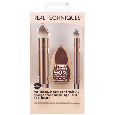 • The Real Techniques Makeupsaver Sponge + Brush Trio includes 3 makeup tools designed to provide finger-like application