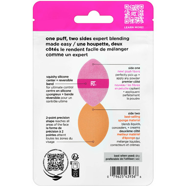 - RT's powder puff is dual-textured and has a reversible elastic band for expert blending with any makeup formulas