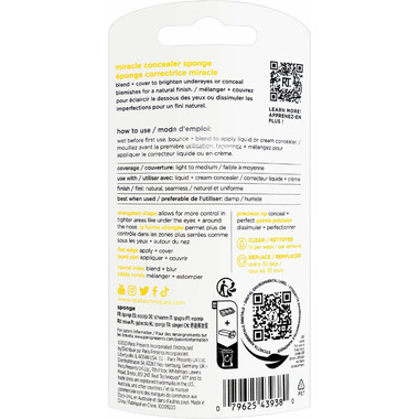 Directions: Wet the Miracle Concealer Sponge before first use. Bounce and blend to apply liquid or cream concealer.