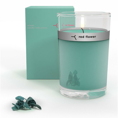 Red Flower Ocean Petal Topped Candle