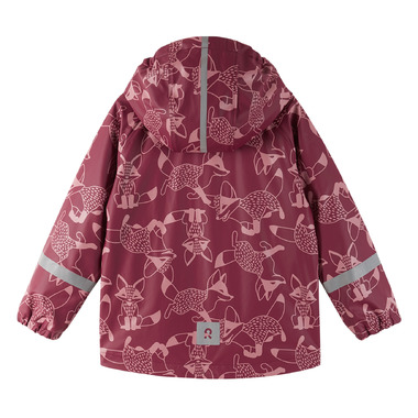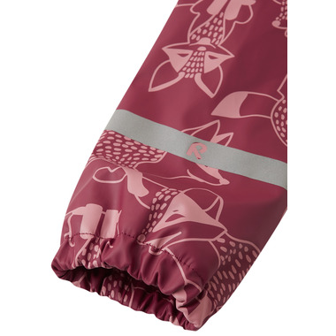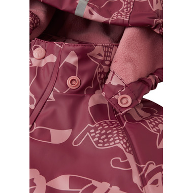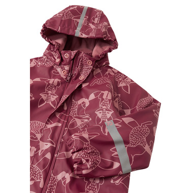 This kids' warm rain jacket comes with a comfy fleece lining. It's made from a flexible material that doesn't harden in the frost. By adding extra layers for additional cosiness, you get a rain jacket for all year around. Its seams have been welded waterproof so that no rain gets through to skin. The detachable hood is safe during active outings and is attached with snap buttons that come off easily if it gets caught on something. This rain jacket for kids has elasticated cuffs and reflective details on the sleeves and hood. All Reima rainwear is made from a soft material without PVC.