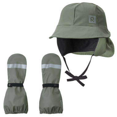 Reima Rain Hat and Mitts Greyish Green Bundle