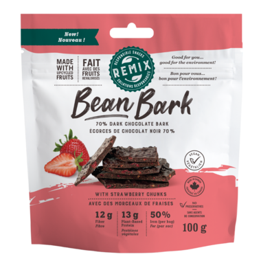 Delicious, high-protein chocolate bark made with upcycled ingredients to reduce food waste. These chocolate snacks are made with beans as a source of protein, fibre and beans. They're the perfect snack to have between meals or as a sweet treat for kids and adults!