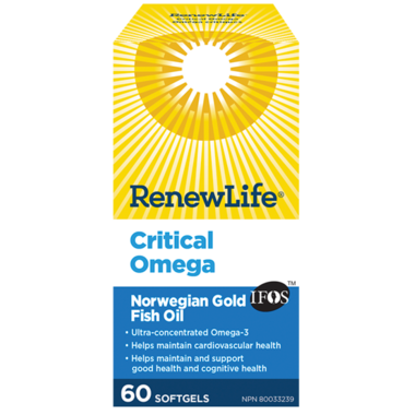 Renew Life® Critical Omega Norwegian Gold helps maintain maintain good overall health and support a healthy mood balance, cardiovascular health, brain function and cognitive health.