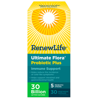 Ultimate Flora® Probiotic Plus Immune Support is formulated to not only support good digestive health, but it contains the clinically studied probiotic Bifidobacterium bifidum R0071 which showed a reduction in the incidence of cold-like symptoms in stressed adults. It also includes four other beneficial strains to provide 30 billion active cultures in a convenient one-a-day dose, so there is no need to take another probiotic supplement.