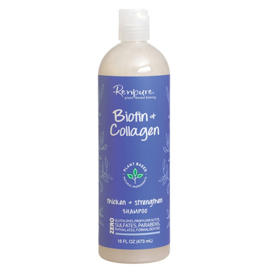 Renpure's custom blend of Biotin and Collagen infuses hair with weightless nutrients that adds volume and strength, making your hair look and feel fuller.