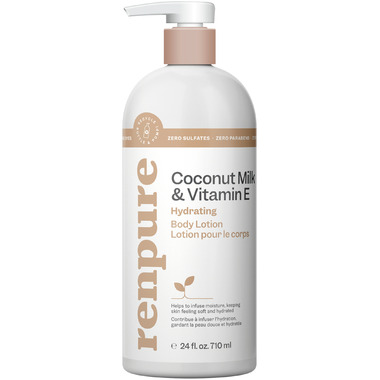 Renpure Coconut Milk & Vitamin E Body Lotion helps to infuse moisture, keeping skin feeling soft and hydrated.