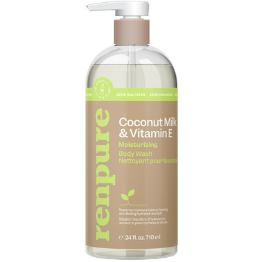 Renpure Coconut Milk & Vitamin E Body Wash restores moisture balance leaving skin feeling hydrated and soft.