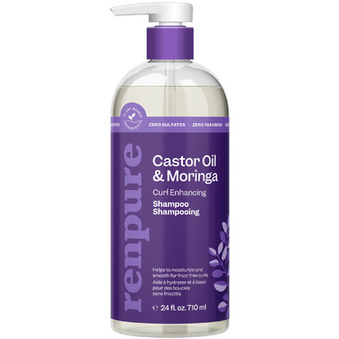 Renpure Castor Oil & Moringa Curl Enhancing Plant-Based Shampoo gently cleanses, nourishes and moisturizes curls to enhance definition, leaving hair soft and frizz-free.