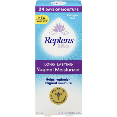 Replens Long-Lasting Vaginal Moisturizer provides immediate relief of dryness symptoms and helps replenish vaginal moisture. Simply apply Replens a couple times a week to help alleviate the feminine discomfort associated with vaginal dryness. Replens is different from other lotions or lubricants because it contains a patented bio-adhesive ingredient that allows it to attach to dry cells and deliver continuous moisture. Replens leaves vaginal tissues hydrated and feeling rejuvenated. Replens is the clinically tested, physician recommended and most trusted brand of long-lasting vaginal moisturizers.